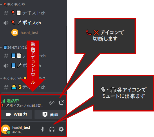 音声通話の切断は、📞❌アイコンで切断出来ます。
